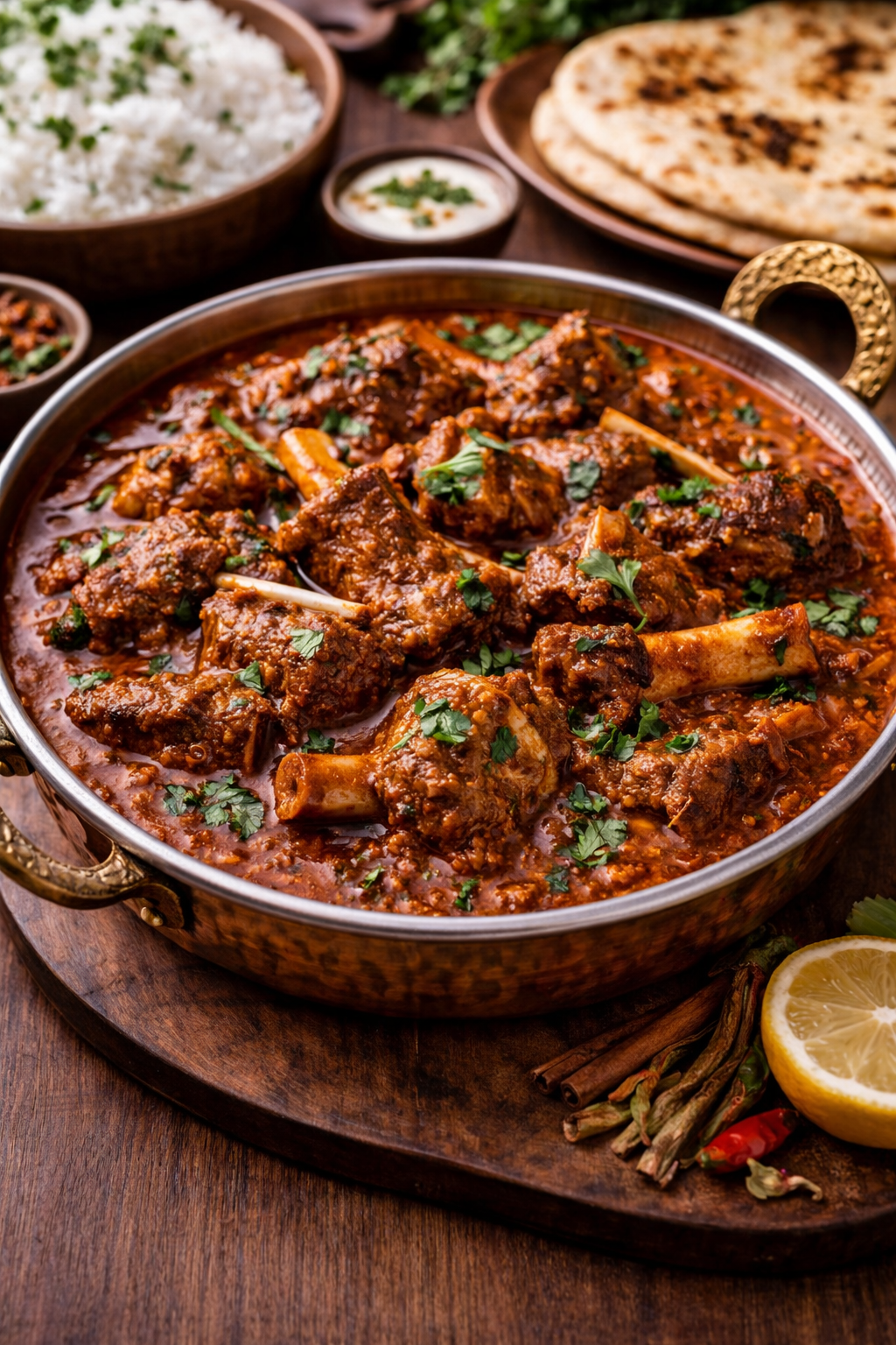 Tender halal goat meat cooked slowly in a bold, spiced curry sauce for deep, authentic flavour.